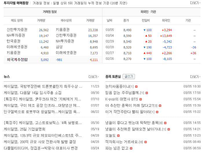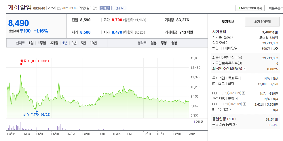 이 글에서는 케이알엠 주가 전망과 목표 주가, 기업 정보에 대해서 설명합니다. 주식 시장에서 중요한 것은 미래의 기업 가치를 예측하고 선제적으로 움직이는 것입니다. 투자 대상을 선택하기 전에 현재 기업의 현황과 데이터를 확인하는 것이 필요합니다. 케이알엠 주식의 주요 현황과 투자 정보를 확인하시고 주식 투자에 도움이 되는 정보들을 모아 제공하니 투자에 도움을 받으실 수 있을 것입니다..