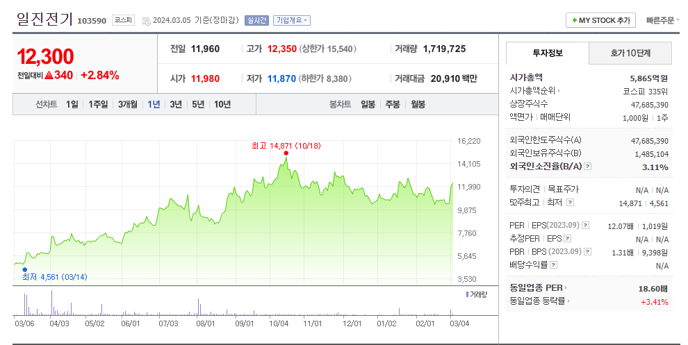 일진전기 주가와 기업개요, 기업분석에 따른 흐름분석