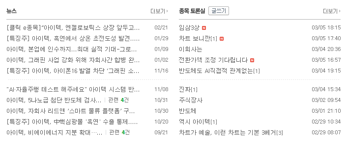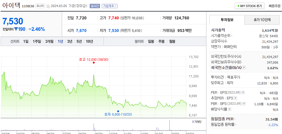 이 글에서는 아이텍 주가 전망과 목표 주가, 기업 정보에 대해서 설명합니다. 주식 시장에서 중요한 것은 미래의 기업 가치를 예측하고 선제적으로 움직이는 것입니다. 투자 대상을 선택하기 전에 현재 기업의 현황과 데이터를 확인하는 것이 필요합니다. 아이텍 주식의 주요 현황과 투자 정보를 확인하시고 주식 투자에 도움이 될 만한 정보들을 모아 놓았으니 투자를 고려하실 때 참고하세요.