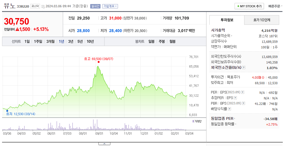 이 글에서는 뷰노 주가 전망과 목표 주가, 기업 정보에 대해서 설명합니다. 주식 시장에서 중요한 것은 미래의 기업 가치를 예측하고 선제적으로 움직이는 것입니다. 투자할 종목을 고르기 전에 현재 기업의 현황과 데이터를 확인하는 것이 필요합니다. 뷰노 주식의 주요 현황과 투자 정보를 확인하시고 주식 투자에 유용한 자료들을 정리하여 제공하오니 효율적인 투자를 해보세요.
