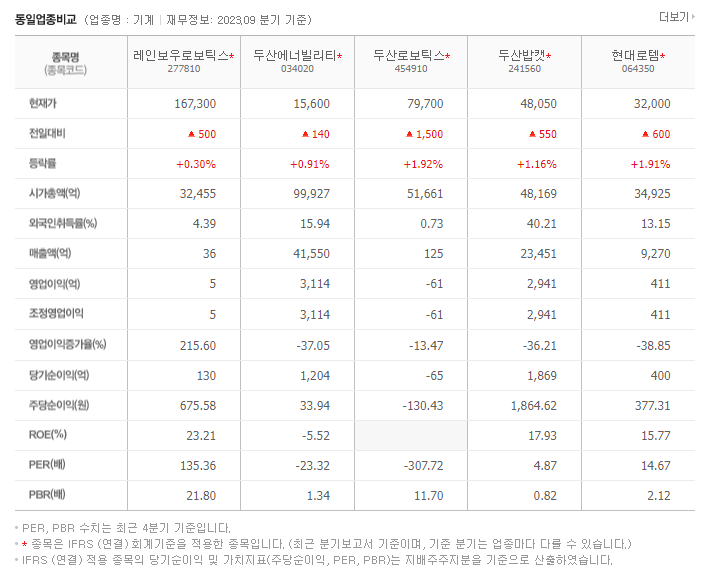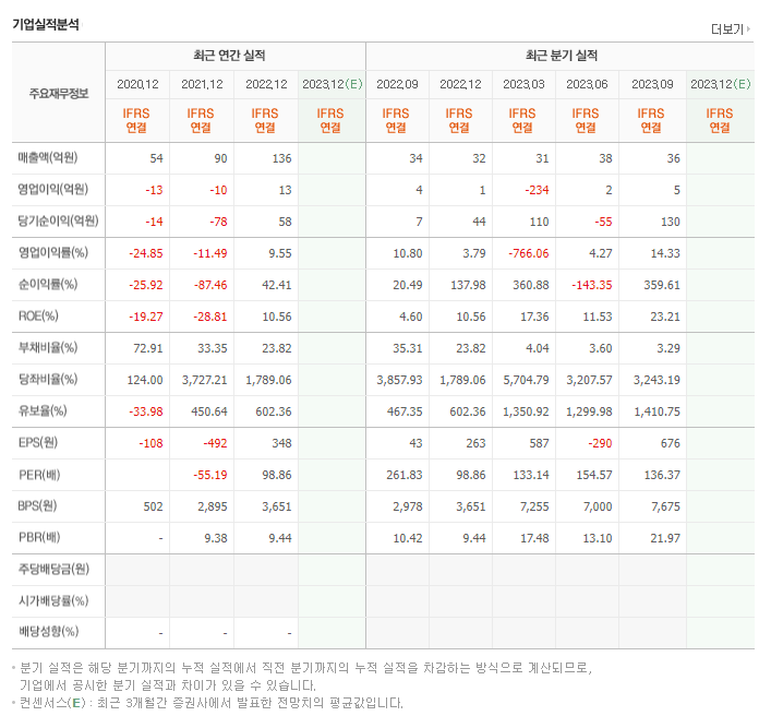 -2023년 9월 전년동기 대비 연결기준 매출액은 0.9% 증가, 영업이익 적자전환, 당기순이익은 1236.5% 증가. 외형은 전년도 수준을 유지하고 있으며, 주식보상비용 발생으로 영업손실을 기록함. 동사는 F&B 벤처기업 파운더스유니온과 F&B 로봇 사업 협력을 위한 전략적 업무협약을 체결함.외식 현장에 최적화된 F&B 로봇 플랫폼을 구축할 계획이며, 자체 개발한 AI 자율주행 서빙로봇을 연내 출시할 계획임.