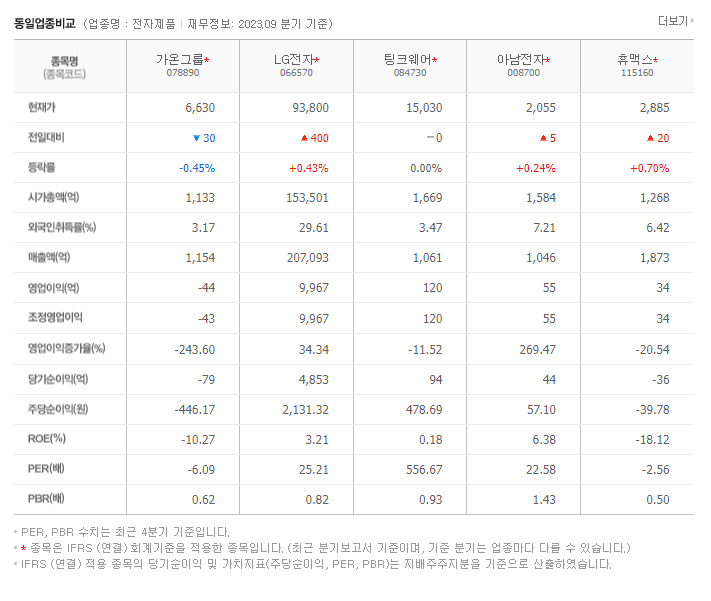 가온그룹 현재 주가는 6,830원이며 전일 대비 -23.40원의 모습을 보이고 있습니다. 가온그룹의 주주현황을 살펴보면 임동연 주주가 전체 지분 14.35%를 소유하고 있습니다. 가온그룹는 셋톱 박스 기업으로 장중 기준으로 주가는 6,830원 입니다. 가온그룹의 시가 총액은 1138억 원이며 발행 주식수는 17,093,155주 입니다. 외국인 보유 비중은 3.26% 이며 장중 거래량은 845,694원 을 기록했습니다. 매출액은 3,994억 원을 달성했습니다. EPS는 없음원이며 가온그룹 주식 배당수익률은 1,862% 입니다.