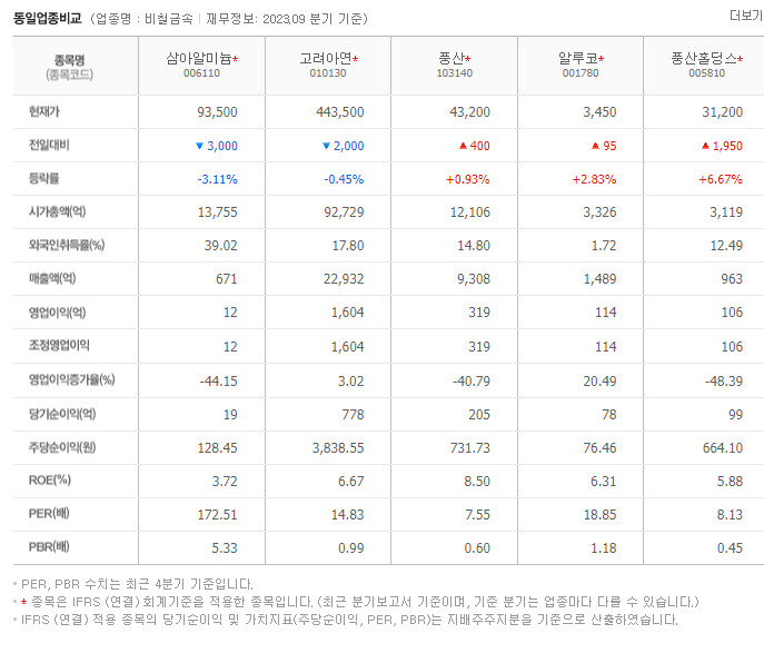 -2023년 9월 전년동기 대비 연결기준 매출액은 13% 감소, 영업이익은 70.4% 감소, 당기순이익은 68.2% 감소. 압연부문 주요 매출처로는 LG에너지솔루션, SK온, 삼성SDI가 있으며, 가공부문 주요 매출처는 오뚜기, FLAIR FLEXIBLE PACKAGING 가 있음. 생산체계를 더욱 견실히 유지하고, 품목 다변화를 통한 판매 확대를 위해 노력하고 있음.