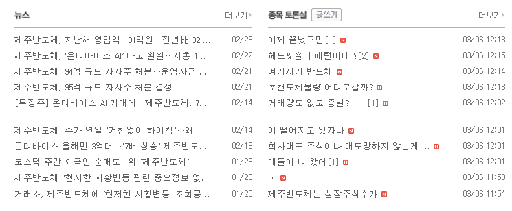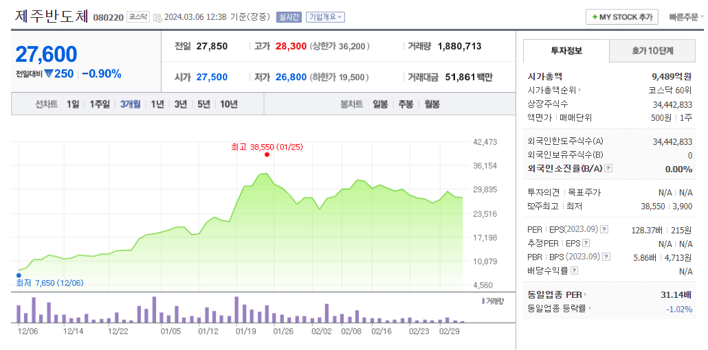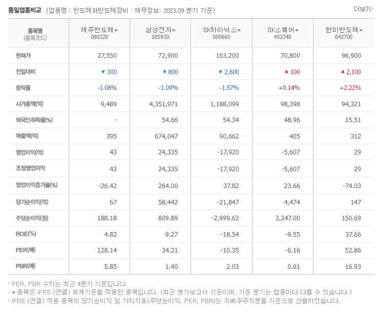 이 글에서는 제주반도체 주가 전망과 목표 주가, 기업 정보에 대해서 설명합니다. 주식 투자에서 핵심은 미래의 기업 가치를 예상하고 선제적으로 움직이는 것입니다. 투자 대상을 결정하기 전에 현재 기업의 현황과 수치를 검토하는 것이 필요합니다. 제주반도체 주식의 주요 현황과 투자 정보를 확인하시고 주식 투자를 고려하고 계신다면 유용한 정보들을 모아 놓은 자료를 확인해보세요.