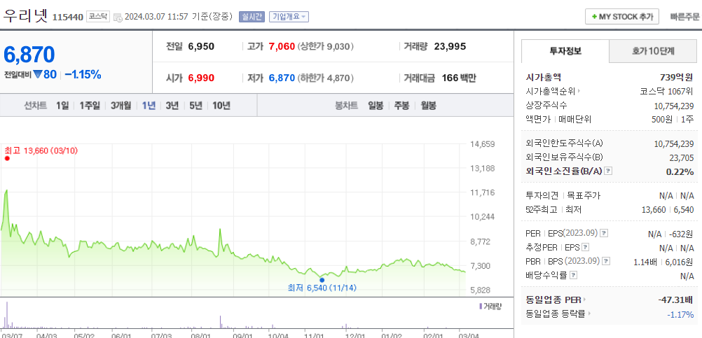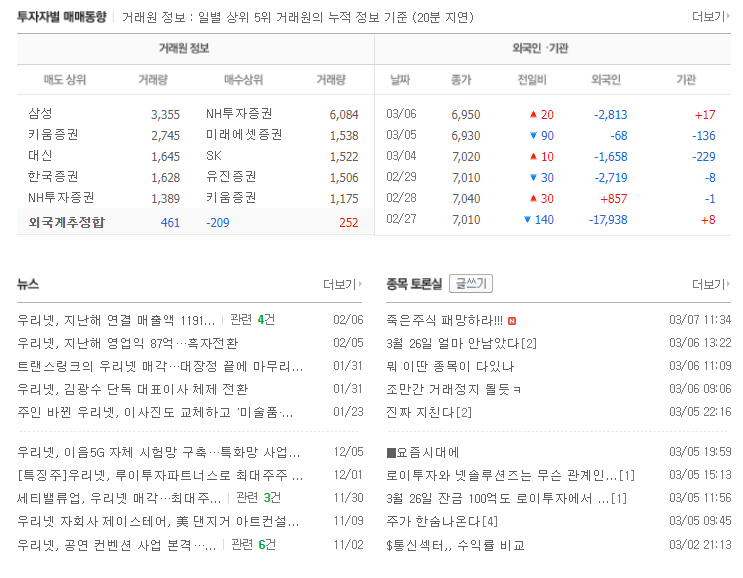 이 글에서는 우리넷 주가 전망과 목표 주가, 기업 정보에 대해서 설명합니다. 주식 거래에서 중요한 부분은 현재 기업 가치보다는 미래의 기업 가치를 예측하고 먼저 행동하는 것입니다. 투자할 종목을 고르기 전에 현재 기업의 상황과 지표를 살펴보는 것이 중요합니다. 우리넷 주식의 주요 현황과 투자 정보를 확인하시고 주식 투자를 고려하고 계신다면 유용한 정보들을 모아 놓은 자료를 확인해보세요.