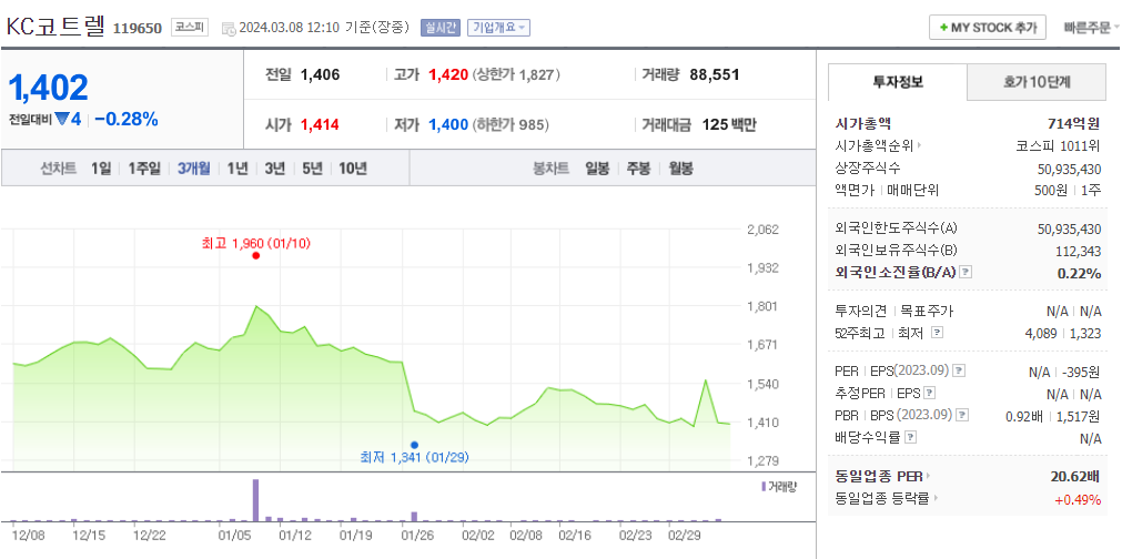 KC코트렐 주가 분석과 분석과 동종업종 비교