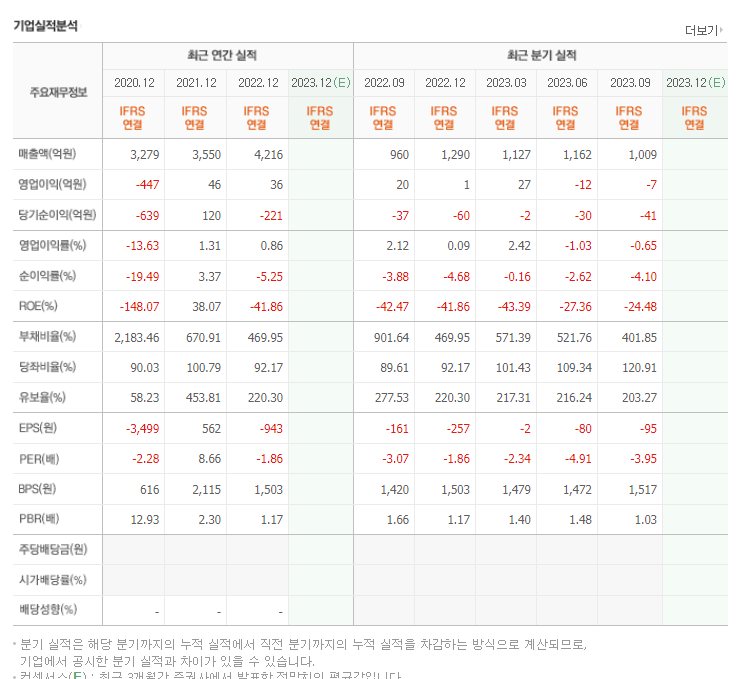 -2023년 9월 전년동기 대비 연결기준 매출액은 12.7% 증가, 영업이익은 75.3% 감소, 당기순손실은 53.6% 감소. 동사는 대만전력청이 석탄화력발전소 이산화탄소(CO2) 절감을 위해 올해 하반기에 발주할 예정인 타이중 발전소 이산화탄소 포집 파일럿 설비 입찰에 참여하고 있는 중임. 탄소포집과 같은 기후변화에 대응할 수 있는 기술과 터널 등에 적용할 수 있는 미세먼지 저감기술과 같은 신기술을 개발하고 있음.