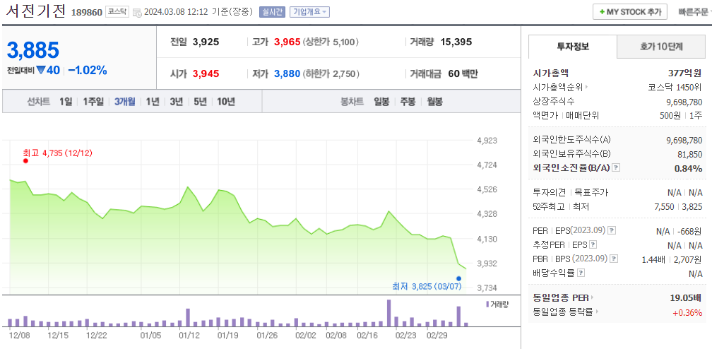 이 글에서는 서전기전 주가 전망과 목표 주가, 기업 정보에 대해서 설명합니다. 주식 투자의 중심은 미래의 기업 가치를 예측하고 선제적으로 움직이는 것입니다. 투자할 종목을 고르기 전에 현재 기업 상태와 지표를 살펴야 합니다. 서전기전 주식의 주요 현황과 투자 정보를 확인하시고 주식 투자에 도움이 될 만한 정보들을 모아 놓았으니 투자를 고려하실 때 참고하세요.