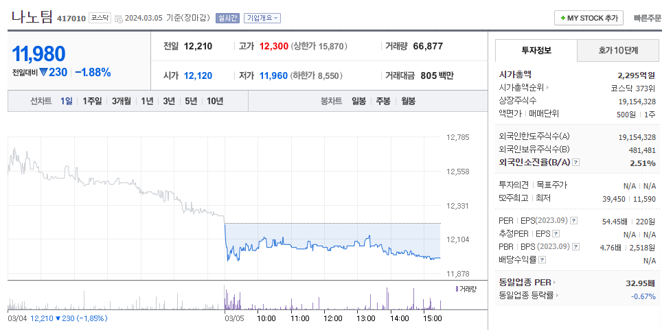 이 글에서는 나노팀 주가 전망과 목표 주가, 기업 정보에 대해서 설명합니다. 주식 거래에서 중요한 부분은 현재 기업 가치보다는 미래의 기업 가치를 예측하고 먼저 행동하는 것입니다. 투자할 종목을 고르기 전에 현재 기업의 상황과 지표를 살펴보는 것이 중요합니다. 나노팀 주식의 주요 현황과 투자 정보를 확인하시고 주식 투자에 도움이 될 만한 정보들을 모아 놓았으니 투자 시 참고하시기 바랍니다..