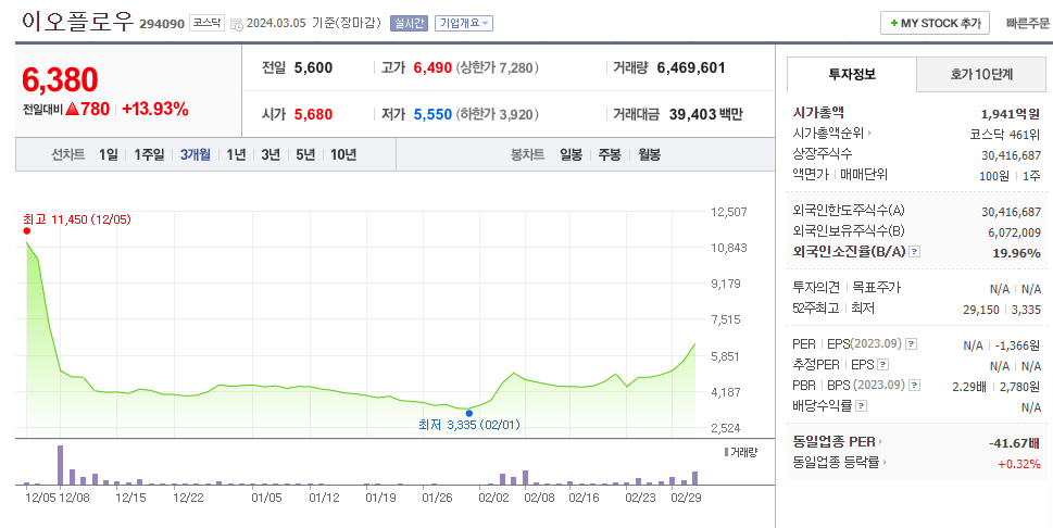 이오플로우 주가 분석