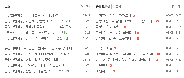 이 글에서는 금양그린파워 주가 전망과 목표 주가, 기업 정보에 대해서 설명합니다. 주식 투자에서 핵심은 미래의 기업 가치를 예상하고 선제적으로 움직이는 것입니다. 투자 대상을 결정하기 전에 현재 기업의 현황과 수치를 검토하는 것이 필요합니다. 금양그린파워 주식의 주요 현황과 투자 정보를 확인하시고 주식 투자에 도움을 줄 자료들을 모아두었으니 참고하여 효율적인 투자를 해보세요.