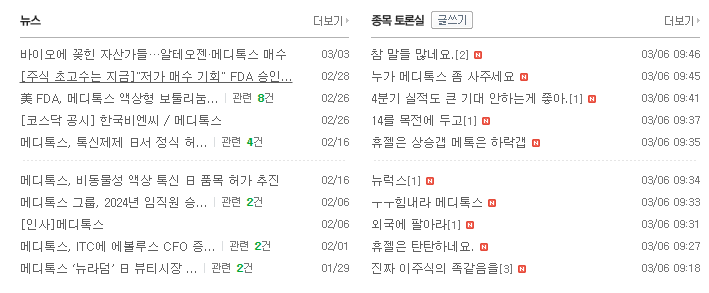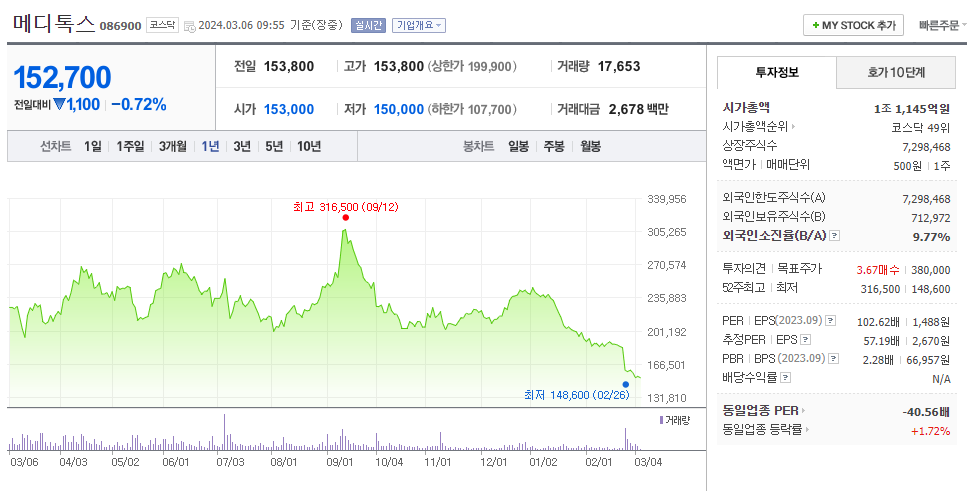 이 글에서는 메디톡스 주가 전망과 목표 주가, 기업 정보에 대해서 설명합니다. 주식 거래에서 중요한 부분은 현재 기업 가치보다는 미래의 기업 가치를 예측하고 먼저 행동하는 것입니다. 투자할 종목을 고르기 전에 현재 기업의 상황과 지표를 살펴보는 것이 중요합니다. 메디톡스 주식의 주요 현황과 투자 정보를 확인하시고 주식 투자에 유용한 정보들을 한 곳에 정리해두었으니 투자 전에 확인하시기 바랍니다.