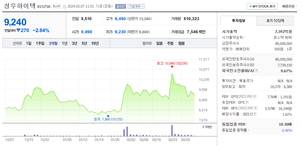 성우하이텍 주가와 경제 상황에 따른 변동성