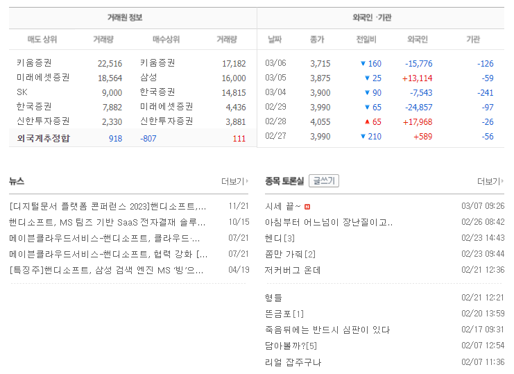 이 글에서는 핸디소프트 주가 전망과 목표 주가, 기업 정보에 대해서 설명합니다. 주식 시장에서 핵심은 미래의 기업 가치를 예측하고 선제적으로 움직이는 것입니다. 투자할 종목을 선택하기 전에 현재 기업의 현황과 데이터를 확인하는 것이 필요합니다. 핸디소프트 주식의 주요 현황과 투자 정보를 확인하시고 주식 투자를 고민하고 계시다면 유용한 정보들을 모아 놓은 자료를 확인해보세요..