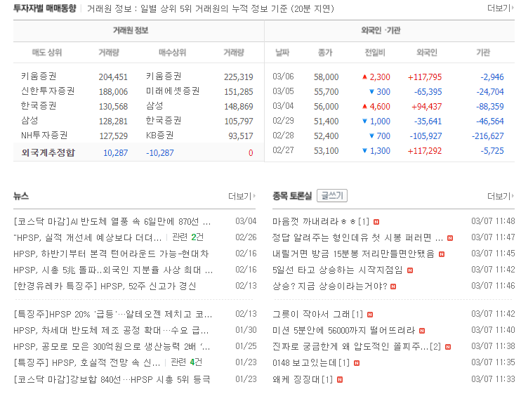 이 글에서는 HPSP 주가 전망과 목표 주가, 기업 정보에 대해서 설명합니다. 주식 시장에서 중요한 것은 미래의 기업 가치를 예측하고 선제적으로 움직이는 것입니다. 투자할 종목을 고르기 전에 현재 기업의 현황과 데이터를 확인하는 것이 필요합니다. HPSP 주식의 주요 현황과 투자 정보를 확인하시고 주식 투자에 유용한 정보들을 한 곳에 정리해두었으니 투자에 도움 받으시길 바랍니다.