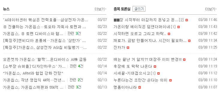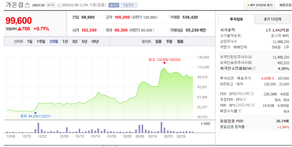 이 글에서는 가온칩스 주가 전망과 목표 주가, 기업 정보에 대해서 설명합니다. 주식 시장에서 중요한 것은 미래의 기업 가치를 예측하고 선제적으로 움직이는 것입니다. 투자할 종목을 고르기 전에 현재 기업의 현황과 데이터를 확인하는 것이 필요합니다. 가온칩스 주식의 주요 현황과 투자 정보를 확인하시고 주식 투자에 도움이 될 만한 정보들을 모아 놓았으니 투자를 고려하실 때 참고하세요..